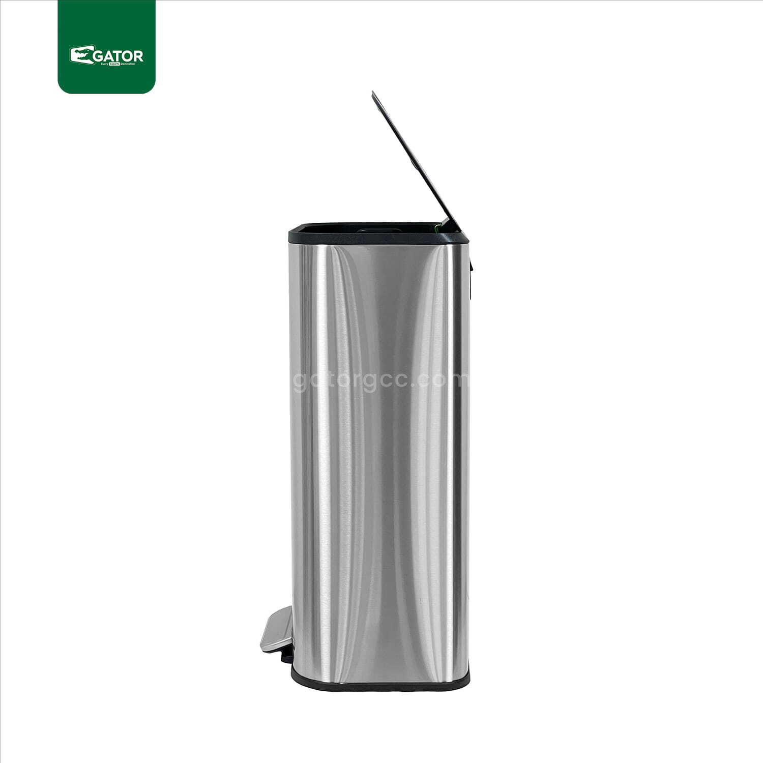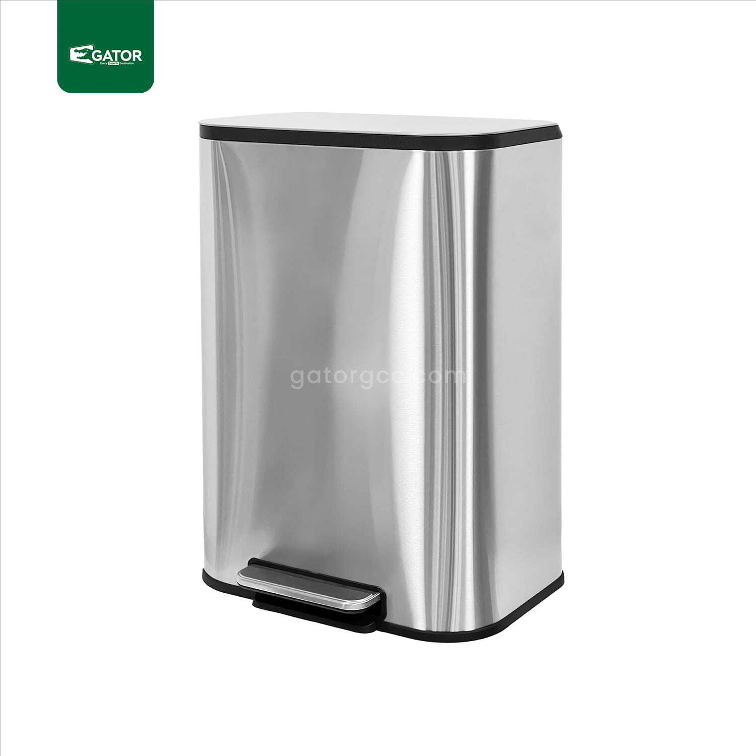 SS09 – Stainless steel pedal trash bin, soft-close lid, removable bucket, non-slip base, rear handle, available in 40L and 10L sizes.