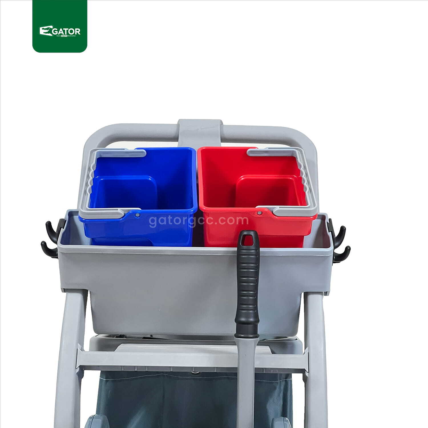 Small Service Trolley – Compact & Fully Equipped with Multiple Buckets The small service trolley is perfectly designed for compact cleaning operations while keeping all essential tools organized. Despite its small footprint, it provides multiple carrying options for buckets, mops, and other cleaning accessories, allowing professionals to work efficiently in tight spaces. It comes with two small top buckets (4 L each, red and blue) and a large front bucket (30 L, blue) with a sturdy plastic wringer for fast water removal. The trolley includes a removable 10 L tray for side cleaning or small tool storage and a rear 25 L polyester bag with side pockets for additional storage. Dual-side handles … Read more