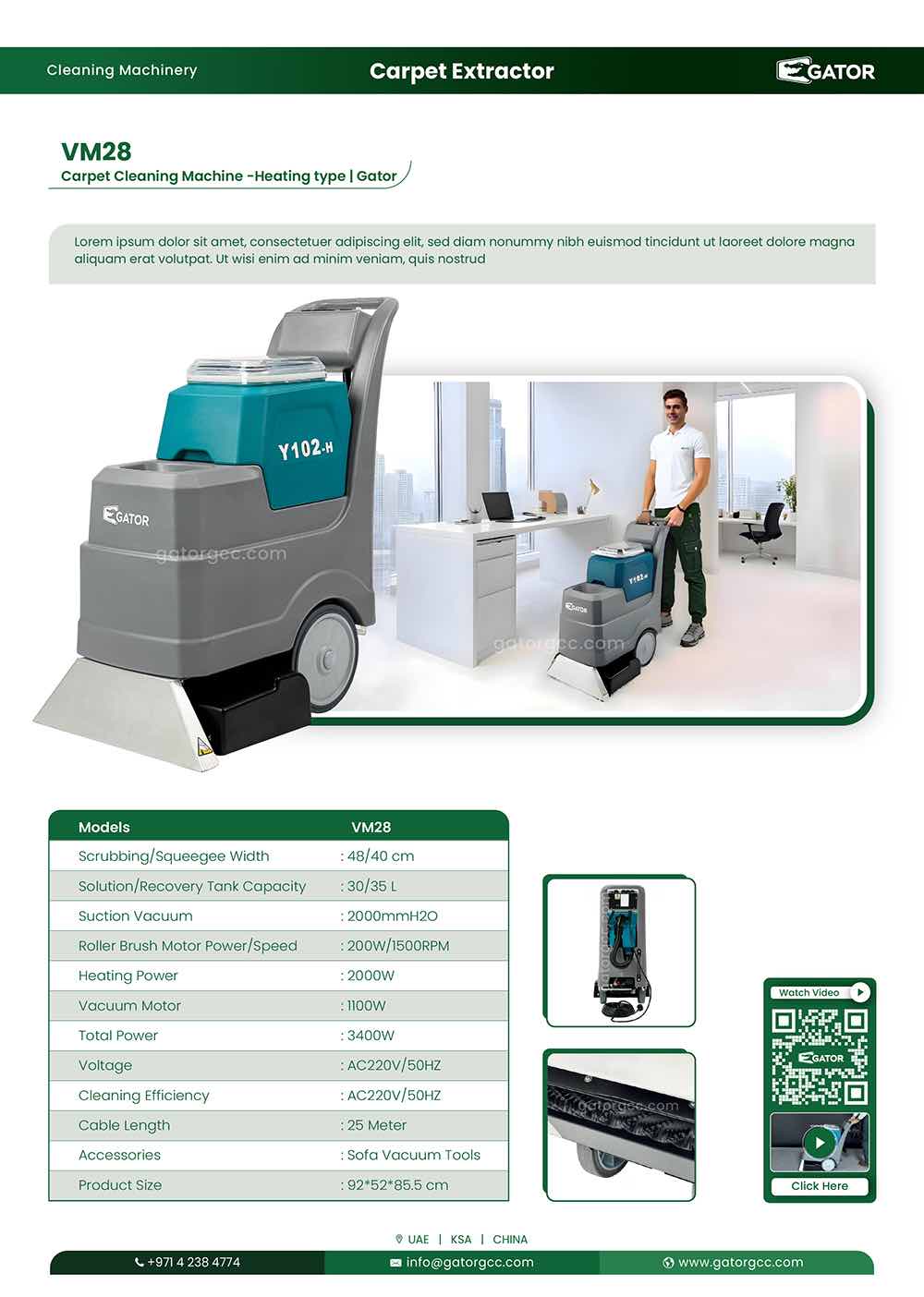 The GATOR Carpet Cleaner – Heating Type is a professional-grade solution designed for deep cleaning and fast extraction in large commercial and industrial spaces. With its built-in heating system, high-speed roller brush, and strong vacuum suction, it ensures spotless carpets in less time.