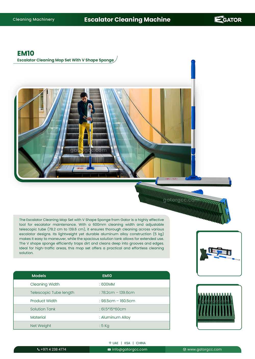 The Escalator Cleaning Mop Set With V Shape Sponge from Gator is the ideal tool for effective and efficient escalator maintenance. Designed with a 600 mm cleaning width, it ensures fast and thorough cleaning of escalator steps.