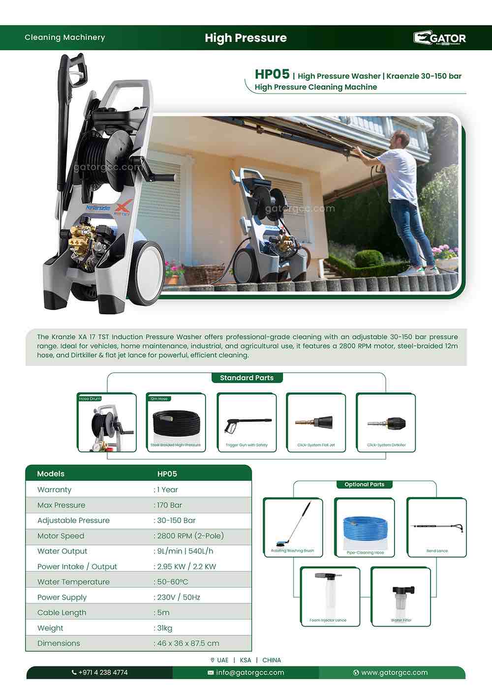The Kranzle XA 17 TST combines power, precision, and ease of use, making it the perfect choice for both professional and residential cleaning tasks.