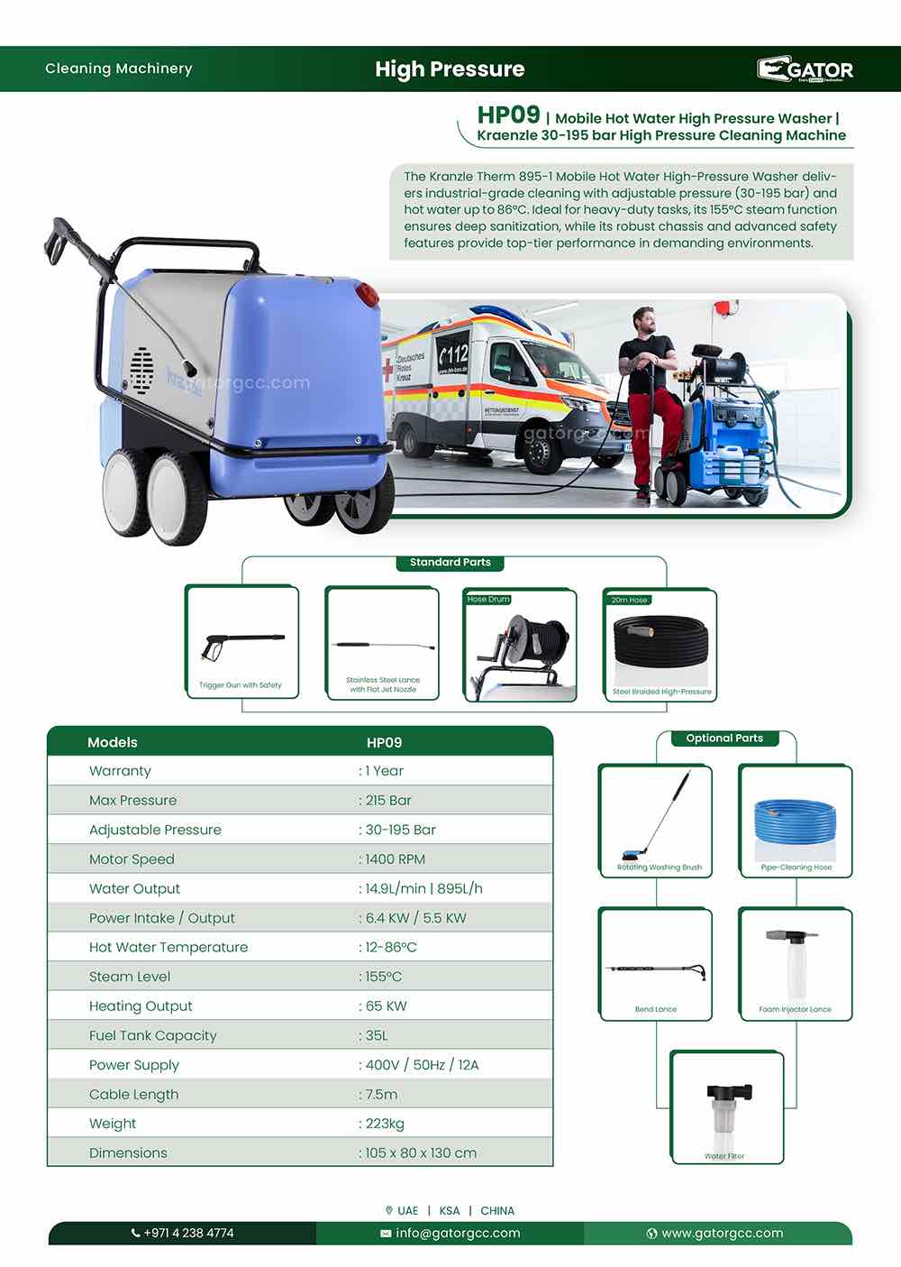 The Kranzle Therm 895-1T is the ultimate solution for demanding cleaning tasks, combining power, efficiency, and advanced technology to deliver exceptional performance in industrial and commercial environments.