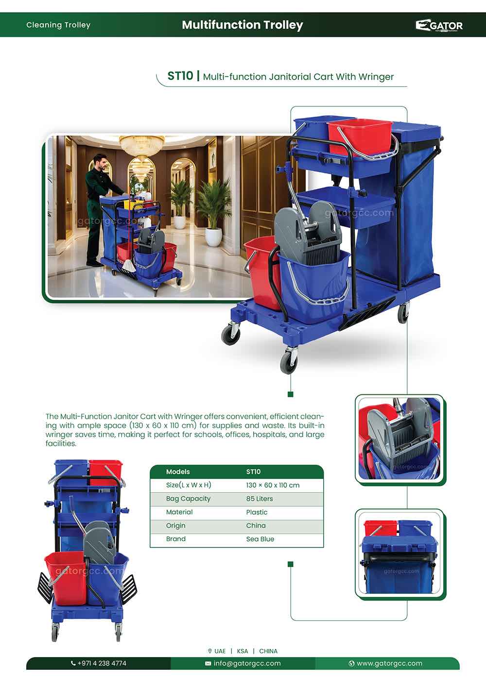 The Multi-Function Janitor Cart with Wringer is designed for the ultimate convenience and efficiency in cleaning tasks. With a spacious size of 132 x 75 x 110 cm, this trolley allows you to carry all your cleaning supplies, tools, and waste in one place. The integrated wringer helps ensure a more efficient mop-wringing process, saving time and effort. Built with durability in mind, it’s ideal for use in schools, offices, hospitals, and large facilities that require consistent, high-quality cleaning performance.