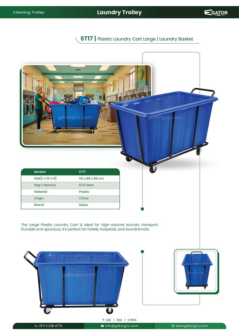 The Large Plastic Laundry Cart is built to handle massive laundry loads with ease. With a spacious 675-liter capacity and dimensions of 89W x 89H x 141L cm, this cart offers exceptional space and stability for transporting large quantities of laundry. Its sturdy plastic construction ensures durability while the efficient design helps keep operations organized and smooth. Ideal for high-volume commercial laundry settings like hotels, hospitals, or laundromats.